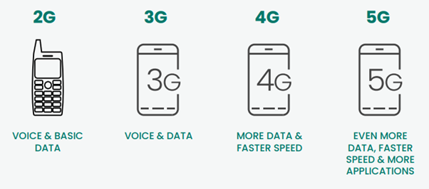 The ‘G’ stands for the ‘Generation’ of mobile phone technology, for example, 4G is the fourth generation. Each evolution has been capable of faster mobile internet (data) services, which has enabled year-on-year growth in data consumption, the mobile service most used by Irish consumers.