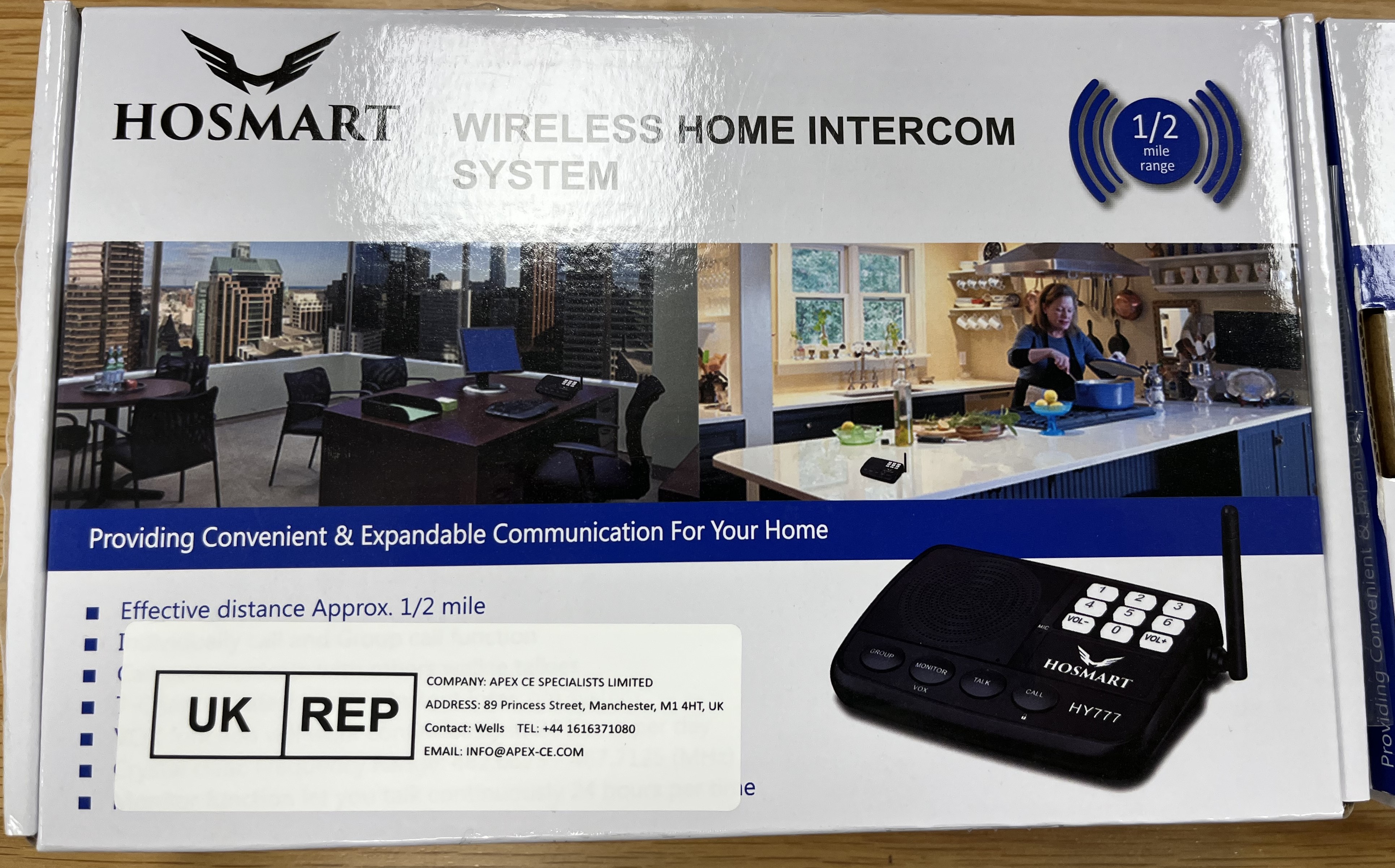 | 11 March 2024 | Hosmart - HY777 Wireless Home Intercom System | 2014/53/EU-IRL-231212-15691 | ![]() |