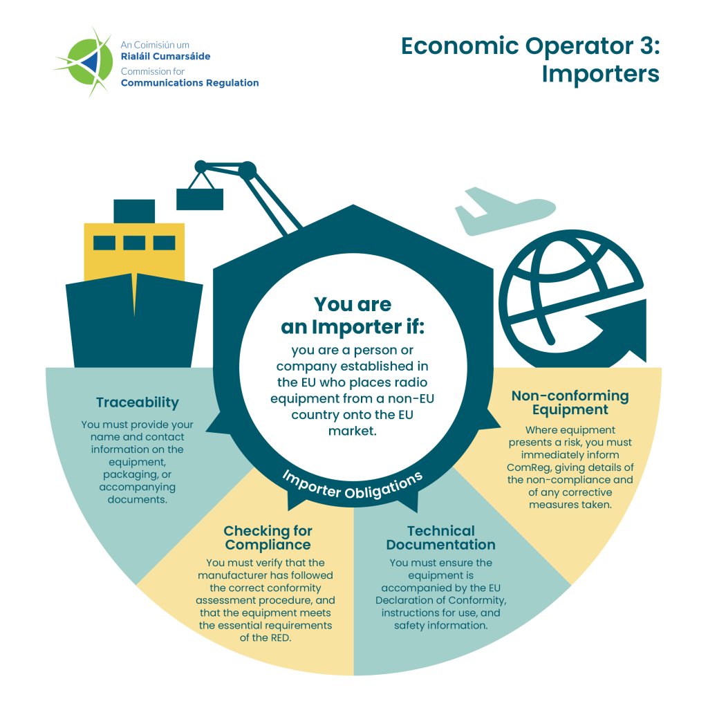 • Cooperate with ComReg, at ComReg’s request, on any action taken to eliminate the risks posed by the radio equipment which the importer has placed on the market.