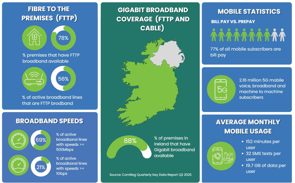 88% of premises in Ireland have Gigabit broadband available.