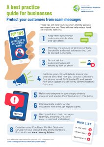 ComReg also assessed a SMS Scam Filter to block scam SMS and protect against future more sophisticated scams but this will require supporting legislation prior to introduction.