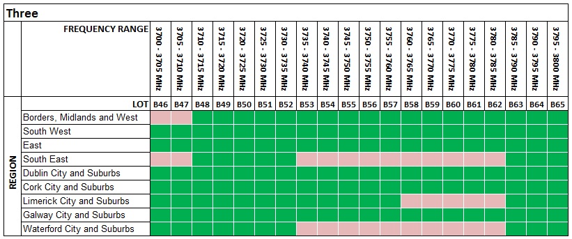 On 1 June 2017, ComReg published an Information Notice setting out the Final Frequency Plan and results of the 3.6 GHz Band Spectrum Award Process